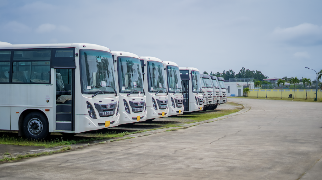 Le Ministre d’État, Ministre des Transports, de la Marine marchande et de la Logistique, Monsieur Ulrich MANFOUMBI MANFOUMBI, a procédé ce jour à la visite officielle des moyens roulants nouvellement acquis dans le cadre de la fusion-absorption entre la SOGATRA et TRANS’urb.